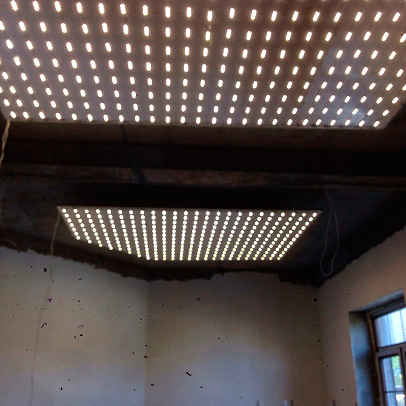 Строительство преподносит сюрпризы. Например: #освещение. Перед нашими монтажниками предстал потолок с двумя кривыми нишами, и каждую нишу заказчик хотел превратить в #нестандартныйсветильник , #светодиодныйсветильник. Было еще и пожелание клиента: #освещение в нише, по проекту, будет вспомогательным. Площадь каждой ниши - 4 квадратных метра. Пришлось нашим монтажникам помучиться: прикрепить по линеечке каждый #светодиодныймодуль , а было модулей 400 штук. Потом, поднять этот лист и прикрепить к потолку. Смонтировать не один #блокпитания. Закрыть акрилом. Работа проведена кропотливая, и как итог: #освещенностьна расстоянии 2,8 метра от потолка- 160 люкс. А пожелание клиента нами было не просто исполнено, а даже перевыполнено: 160 люкс подходит для полного #освещения, например спальни. Или коридора .
