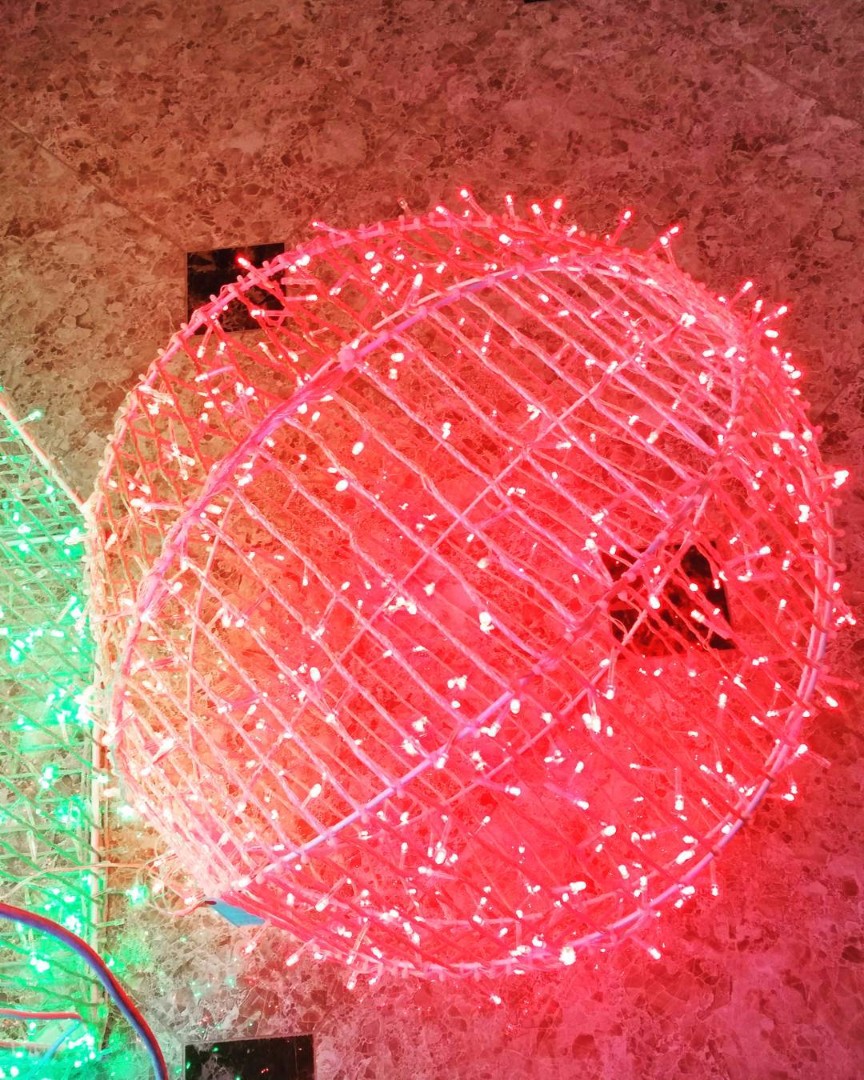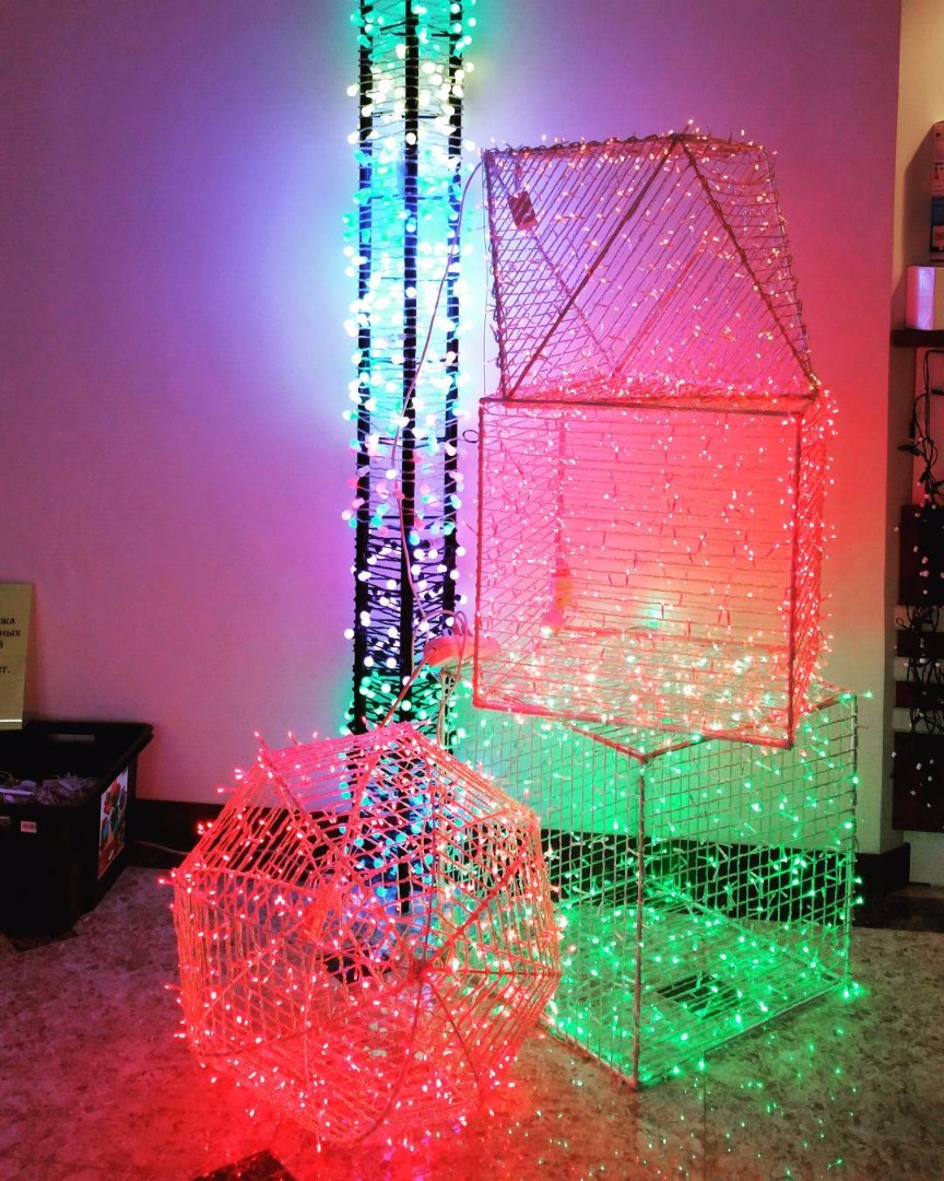 украшений растёт. Теперь у нас есть новые светодиодные фигуры: шар, куб, додекаедр разных цветов.