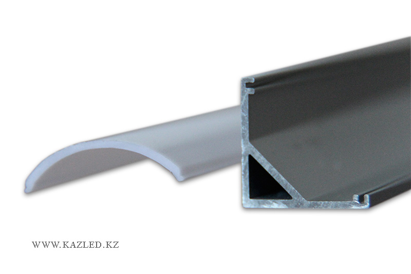 Угловой алюминиевый профиль А1616 длиной 2 метра. В комплекте заглушки и крепления. Матовый рассеиватель. Размеры 2000х16х16 мм.