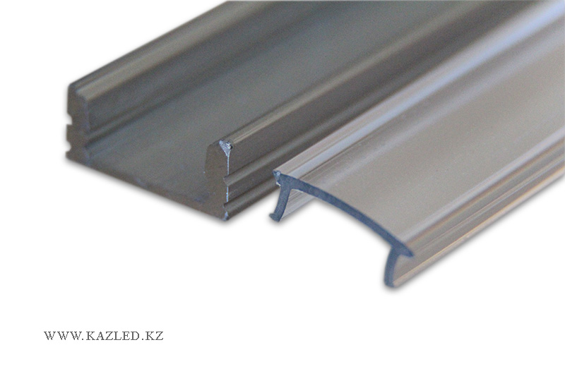 Профиль алюминиевый длиной 2 метра, с прозрачным или матовым рассеивателем, креплениями и заглушками. Размеры 2000х17х7 мм.