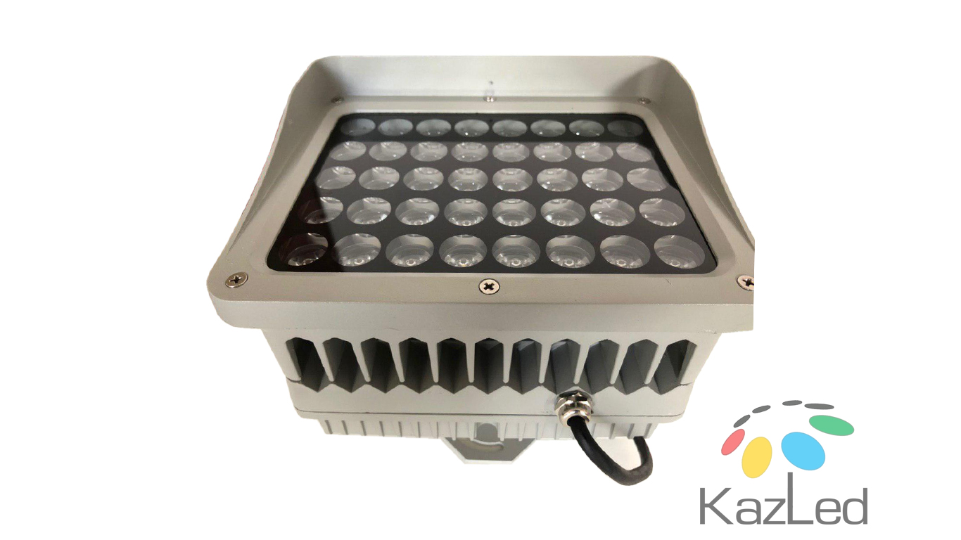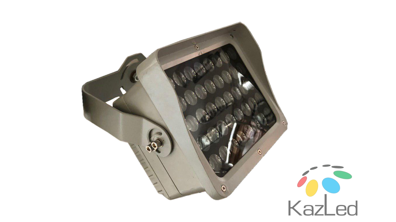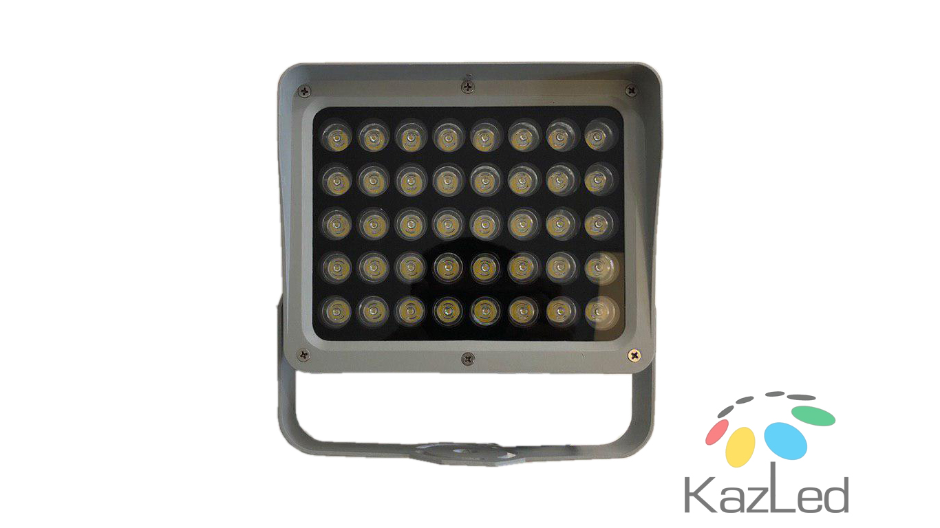 Светодиодный прожектор. Потребляемая мощность 40 Вт. Напряжение питания 90-265 В. Степень защиты IP 66. Угол светового потока 15 градусов. Цветовая температура 3000 К. Цвет: тепло-белый.