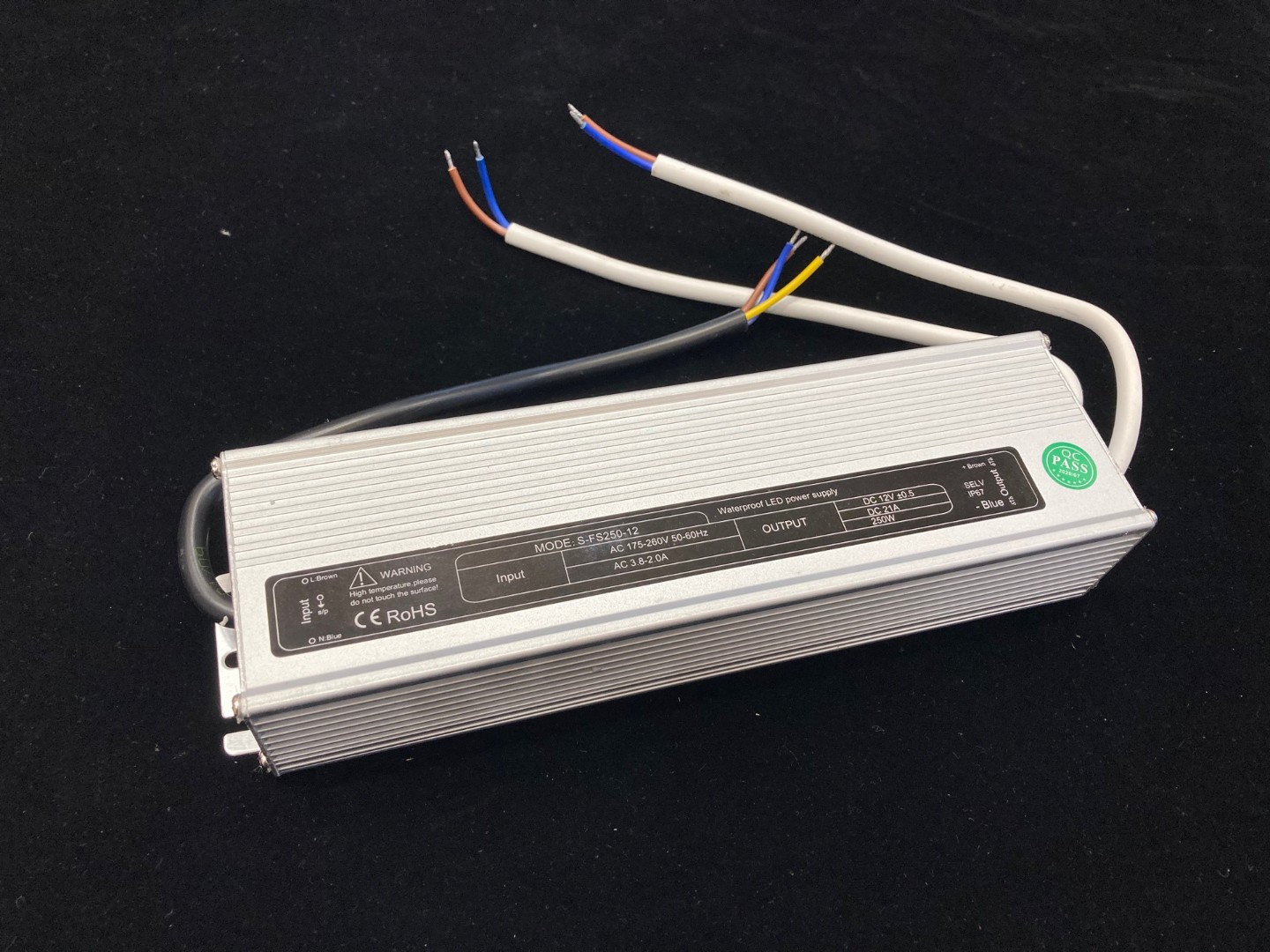 Блок питания 12V/20,8A. Мощость 250 Вт. Степень защиты IP67. Размер: 235 Х 66 Х 45 мм.