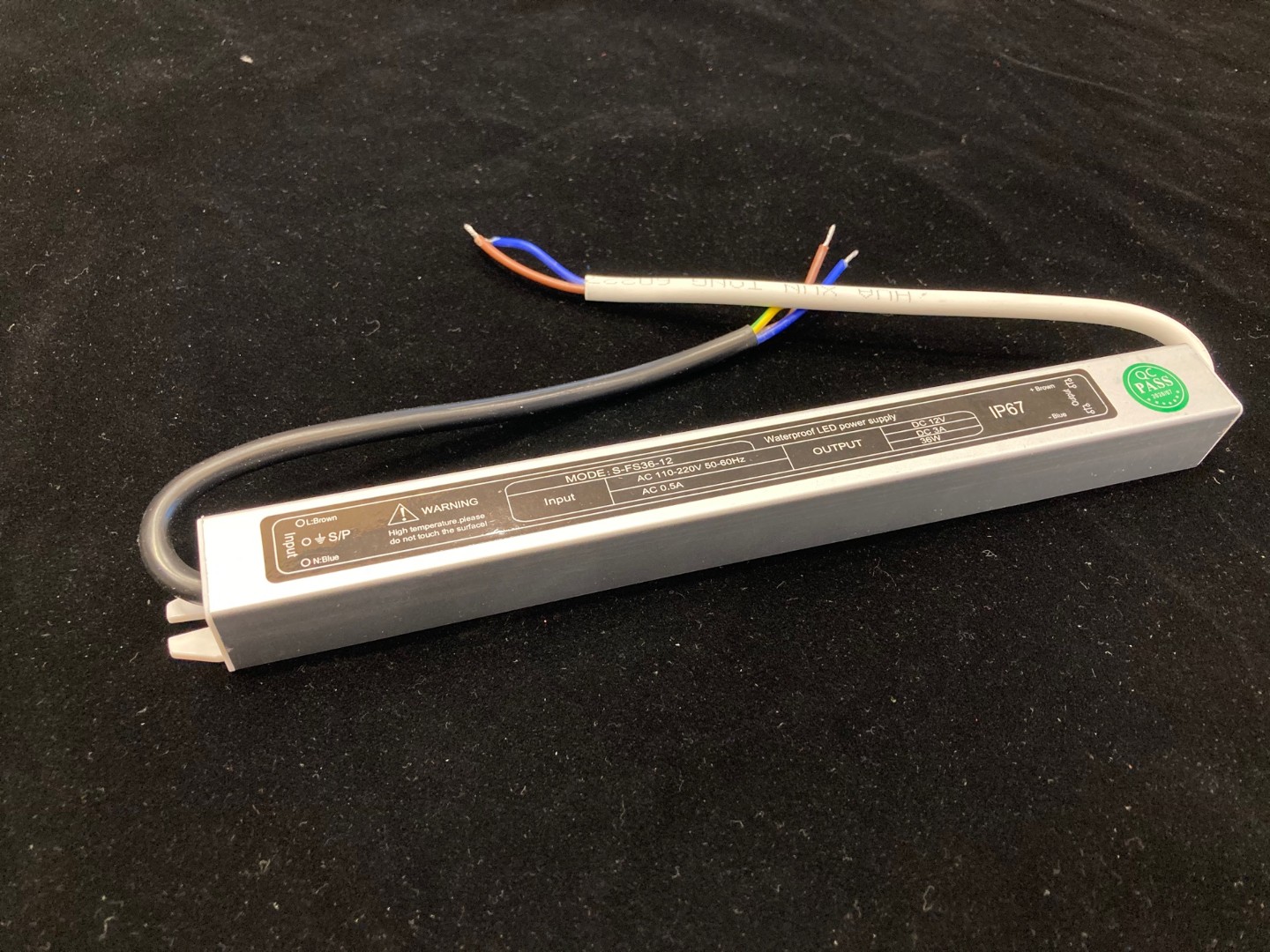 Блок питания 12V/3A. Мощость 36 Вт. Степень защиты IP67. Размер: 241 Х 22 Х 20 мм.