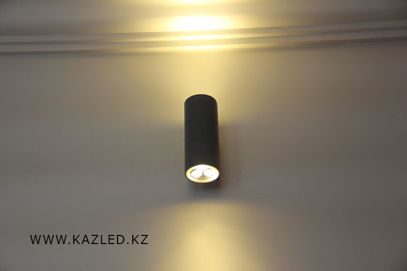 Светильник декоративный, настенный. Двухлучевой. Цвет корпуса серый. Рабочее напряжение 90 - 260 В. Степень защиты IP 65. Мощность 12 Вт. Размеры 90 Х 260 мм. Цвет теплый белый или холодный белый