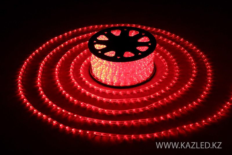 Дюралайт светодиодный (один ряд светодиодов) напряжение питания 220 вольт. Цвет красный. Режется кратно 2 метрам. Диаметр 11-12 мм, 100 метров в катушке. Количество светодиодов на 1 погонный метр - 30 шт. Мощность 1,8 Вт/метр. Угол свечения - 360 градусов.