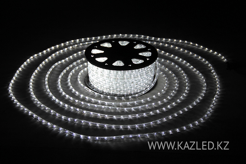 Дюралайт светодиодный (один ряд светодиодов) напряжение питания 220 вольт. Цвет холодный белый. Режется кратно 2 метрам. Диаметр 11-12 мм, 100 метров в катушке. Количество светодиодов на 1 погонный метр - 30 шт. Мощность 1,8 Вт/метр. Угол свечения - 360 градусов.