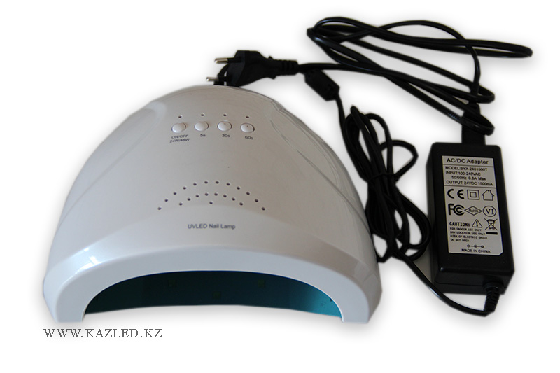 Напряжение питания 100-240V. Потребляемая мощность 36 W. Количество светодиодов 30 шт. Присутствует сенсорный датчик включения. Есть датчик времени на 30, 60 и 90 секунд. Цена 14 000 тенге. Гарантия 3 месяца.