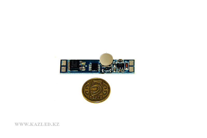 Размеры: 10 Х 45 мм. Рабочее напряжение 12 - 24 В. Максимальный ток 8 А. Предназначен для монтажа в П - образный профиль для управления светодиодными изделиями на 12 - 24 В.