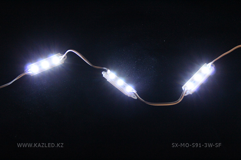 Светодиодные модули. Напряжение питания 12 В. 3 светодиода типа 3528 на модуль. Мощность 0,27Вт на модуль. Степень защиты IP 67. Высокая яркость. Размер 47 Х 15 мм.