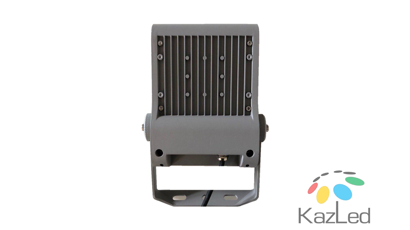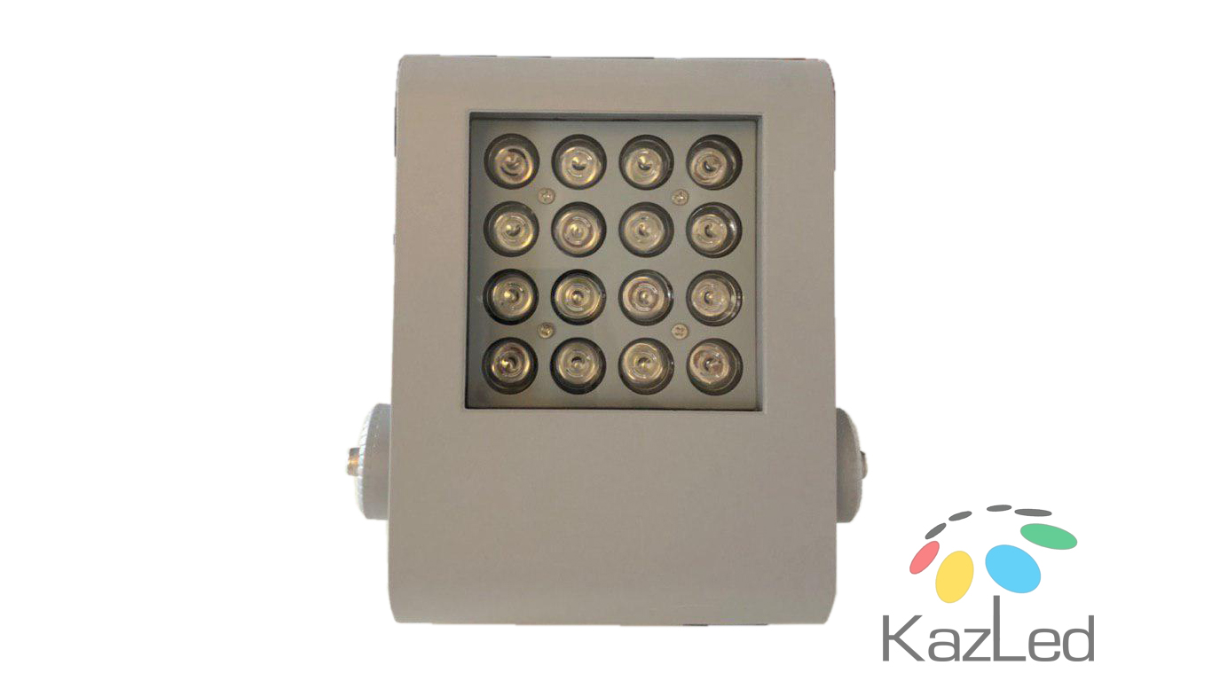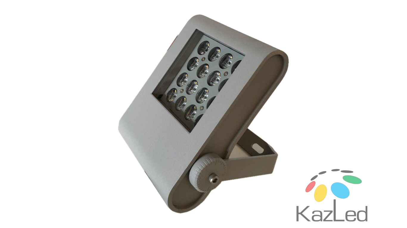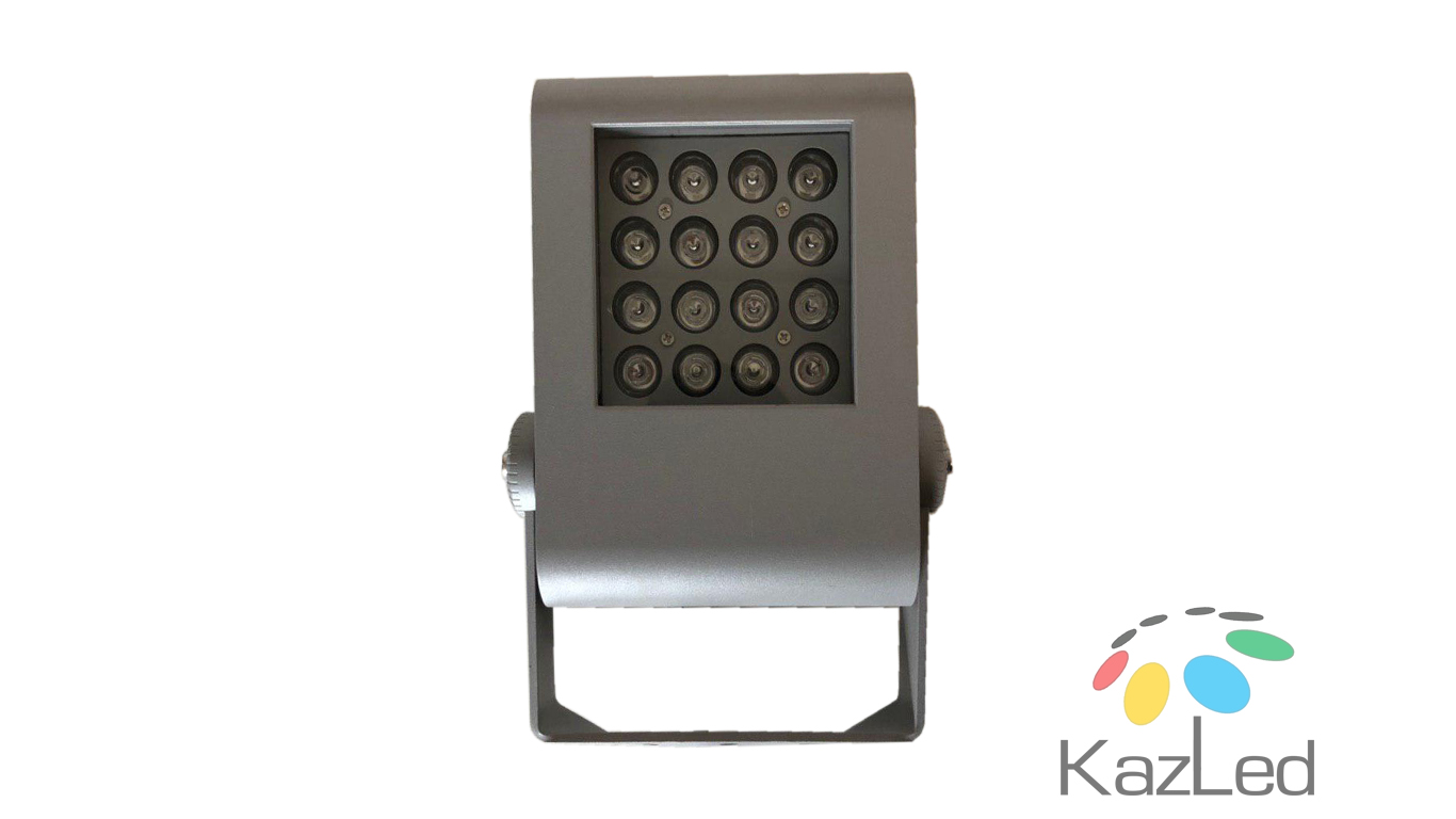 Светодиодный прожектор. RGB (Мультицвет). Потребляемая мощность 32 Вт. Напряжение питания 24 В. Степень защиты IP 66. Угол светового потока 30 градусов. Блок питания и контроллер в комплект не входят. Корпус - серого цвета. Размер: 200х150х56 мм