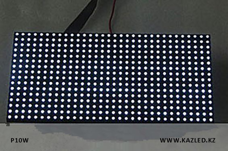 Светодиодный модуль для LED-дисплея. Цвет белый, красный, синий, зеленый, желтый. Размеры 320 Х 160 мм. Шаг пикселя – 10 мм. Яркость 325 Кд. Мощность 50 Вт. Угол обзора: вертикально 50 гр, горизонтально 110 гр. Оптимальная дальность просмотра: от 10 м до 120 м. Температура рабочей среды: от – 37гр. до +60 гр. Степень защиты - IP 65. Интерфейс управления – PCI, USB.