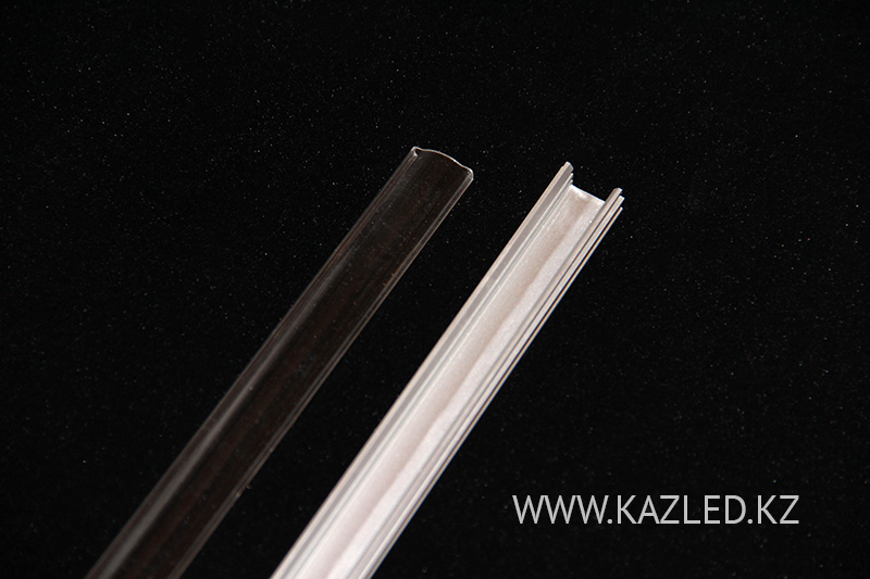 Профиль алюминиевый длиной 1 метр, с прозрачным или матовым рассеивателем, креплениями и заглушками.