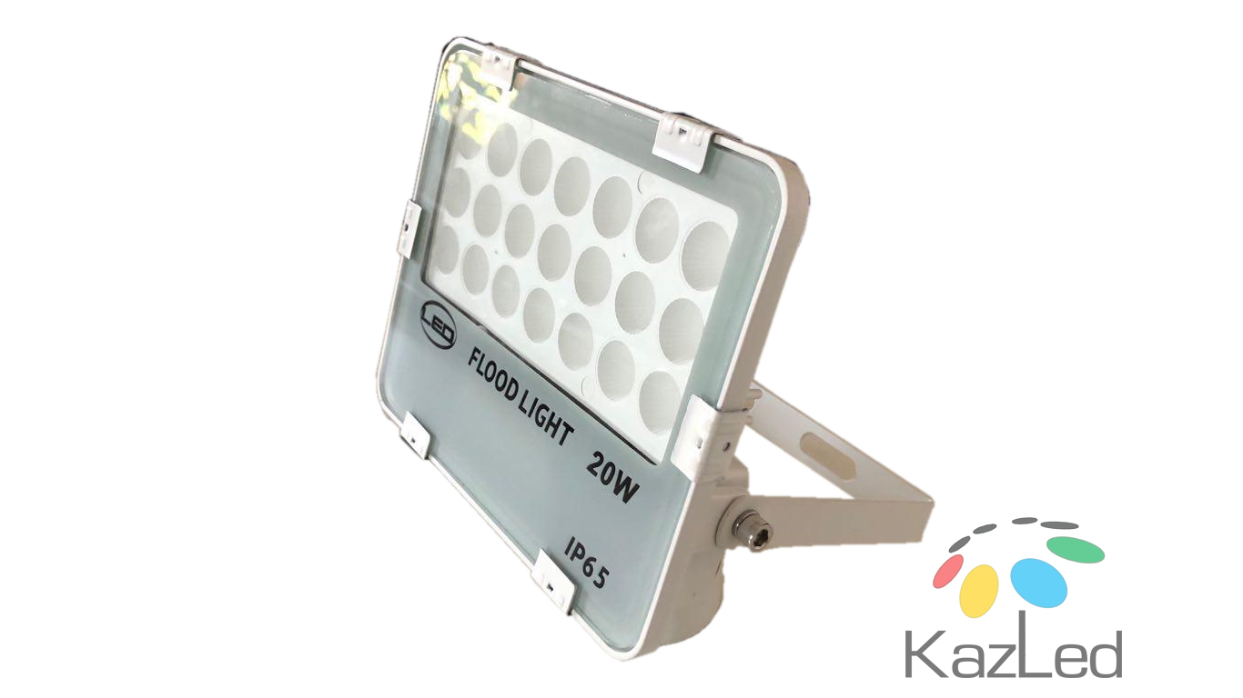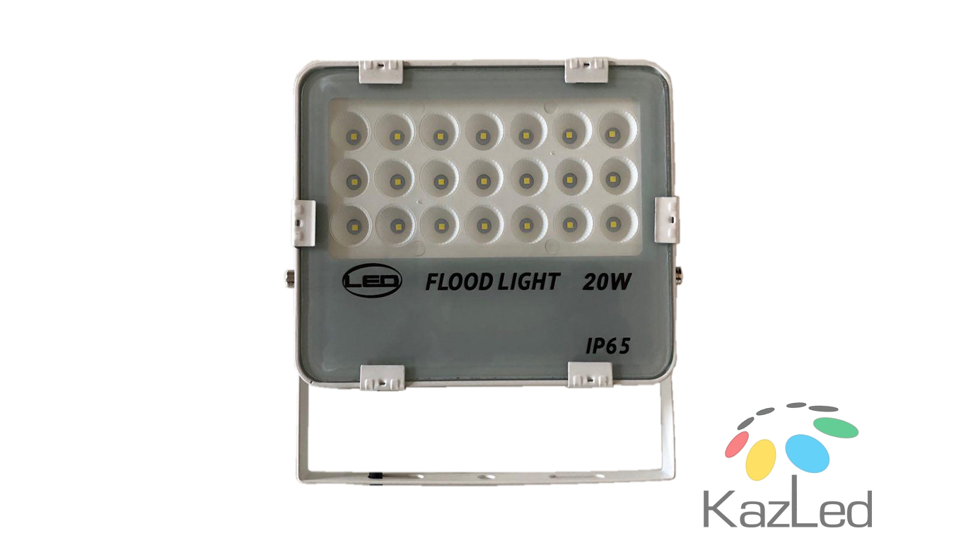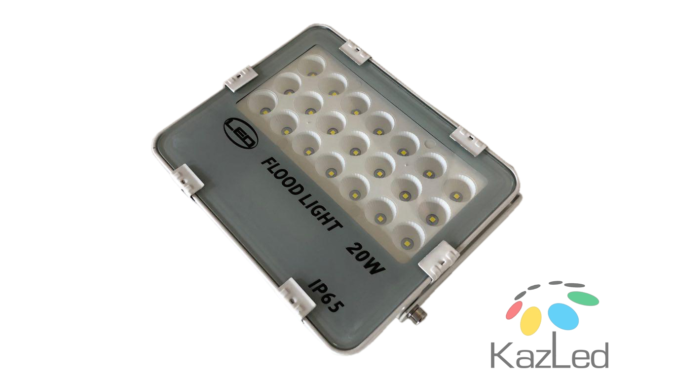 Светодиодный прожектор мощностью 20 Вт. Напряжение питания 90-265 В. Угол светового потока 120 градусов. Световой поток - 2400 Лм. Цвет холодный белый - 6000К. Степень защиты IP66. Размеры 185x150x40мм
