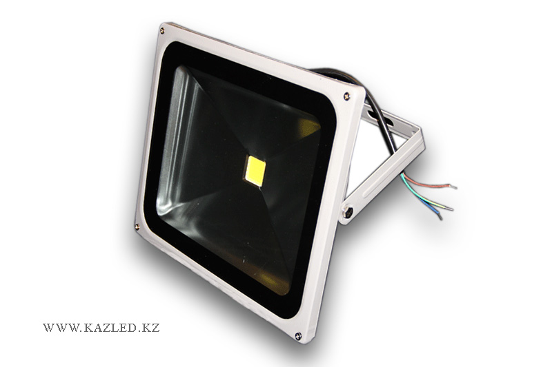 Светодиодный прожектор мощностью 50 Вт. Напряжение питания 220 В. Угол светового потока 120 градусов. Световой поток - 3800 Лм. Цвет холодный белый.