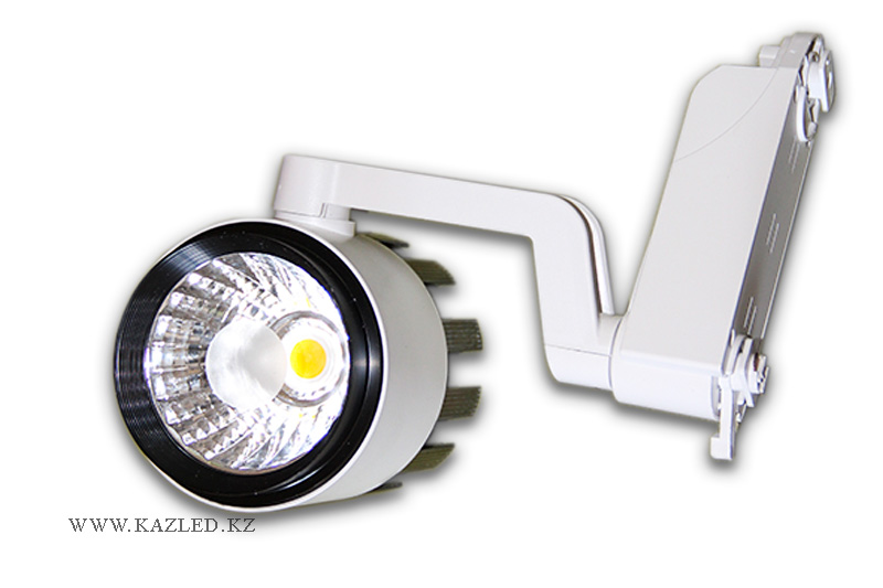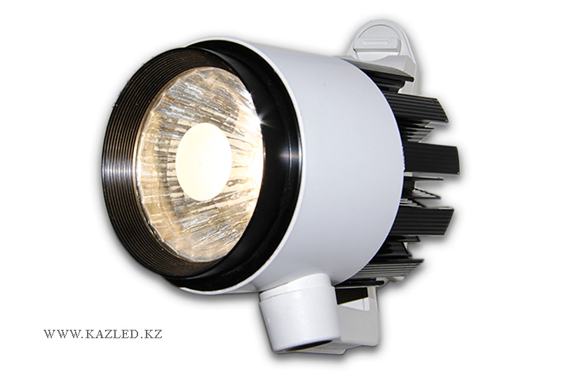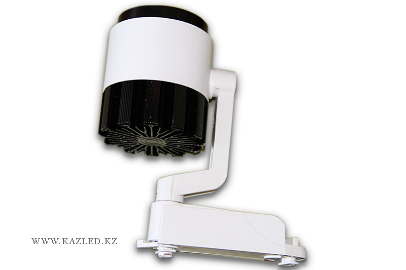 Трековый светильник светодиодный. Мощность - 20 Вт. Световой поток - 1700 ± 5% Lm. Угол освещенности 24 градуса. Размер 100 Х 120 мм.
